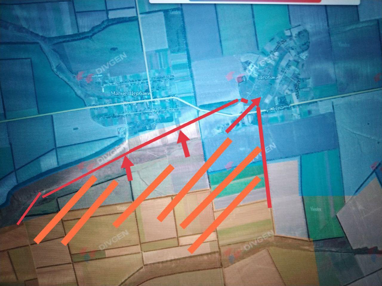 Подразделения ВС РФ зашли в Щербаки с юго-запада.