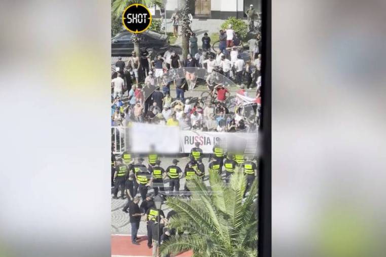 В Батуми грузинские оппозиционеры закидали яйцами лайнер с россиянами на борту. Видео © Telegram / SHOT