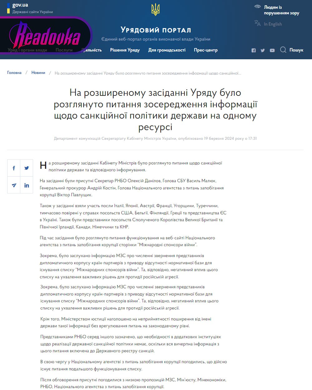 Украина закрывает список «международных спонсоров войны» после требований стран Запада