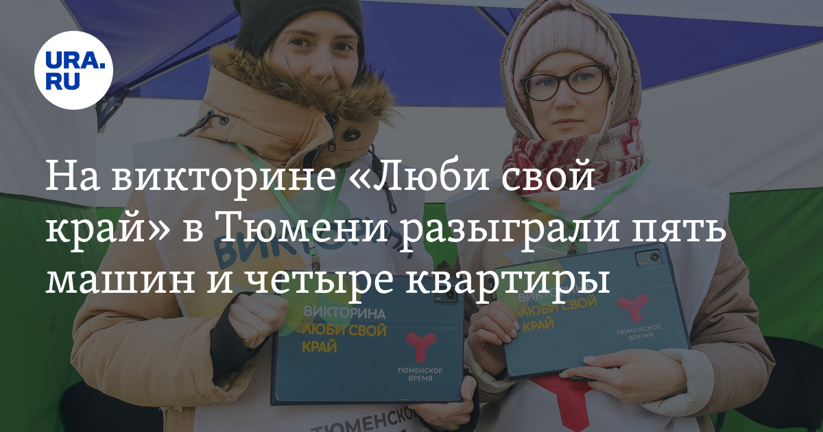 Подошел к концу последний из семи прямых эфиров телевикторины «Люби свой край», участникам которой подарили почти 100 подарков. Среди них — пять автомобилей и четыре квартиры в новостройке. Прямые трансляции на канале «Тюменское время» шли на протяжении трех дней: 15, 16 и 17 марта.