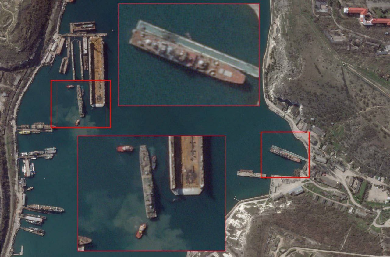 Судя по опубликованному свежему спутниковому снимку последствий ракетного удара ВСУ французскими и британскими ракетами Scalp и Storm Shadow по десантным кораблям Черноморского флота России (предположительно, «Ямал» и «Азов»), заметных повреждений кораблям ракеты нанести не смогли.