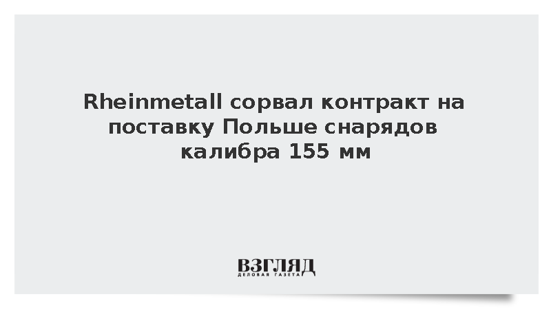 Немецкий оборонный концерн Rheinmetall сорвал контракт на поставку Польше артиллерийских снарядов калибра 155 мм, сообщает газета Rzeczpospolita.