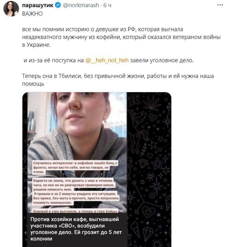 Идиотка из Люберец, которая хвасталась, что в её кафе не обслуживают воинов СВО сбежала в Сакартвело.