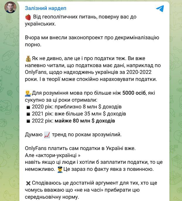 πΠ£ΠΊΡΠ°ΠΈΠ½ΠΊΠΈ Π·Π°ΡΠ°Π±ΠΎΡΠ°Π»ΠΈ ΠΎΠΊΠΎΠ»ΠΎ $123 ΠΌΠ»Π½ Π½Π° OnlyFans Π·Π° 2020-2022 Π³ΠΎΠ΄Π°, Π½ΠΎ Π½Π΅ Π·Π°ΠΏΠ»Π°ΡΠΈΠ»ΠΈ Π½Π°Π»ΠΎΠ³ΠΈ Ρ ΡΡΠΈΡ Π΄ΠΎΡ ΠΎΠ΄ΠΎΠ² ΠΈΠ·-Π·Π° ΠΎΡΡΡΡΡΡΠ²ΠΈΡ Π·Π°ΠΊΠΎΠ½ΠΎΠ΄Π°ΡΠ΅Π»ΡΠ½ΠΎΠΉ Π±Π°Π·Ρ, β Π½Π°ΡΠ΄Π΅ΠΏ ΠΠ΅Π»Π΅Π·Π½ΡΠΊ