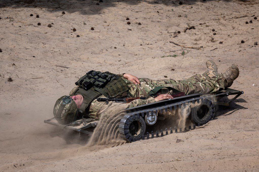 На секретном полигоне под Киевом украинские производители провели испытания нескольких образцов дистанционно управляемых ношей, предназначенных для экстренной эвакуации раненых бойцов с поля боя.
