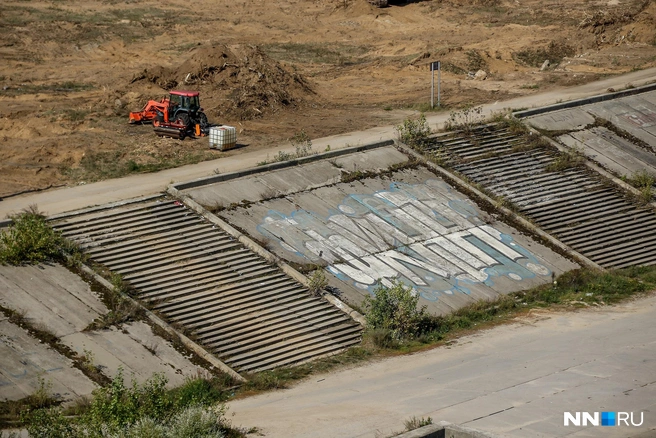 Территория, где развернется большая стройка, сейчас выглядит довольно пустынно. За объемными буквами поставили бытовку и туалетную кабинку. В день нашего визита на участке работали два трактора.