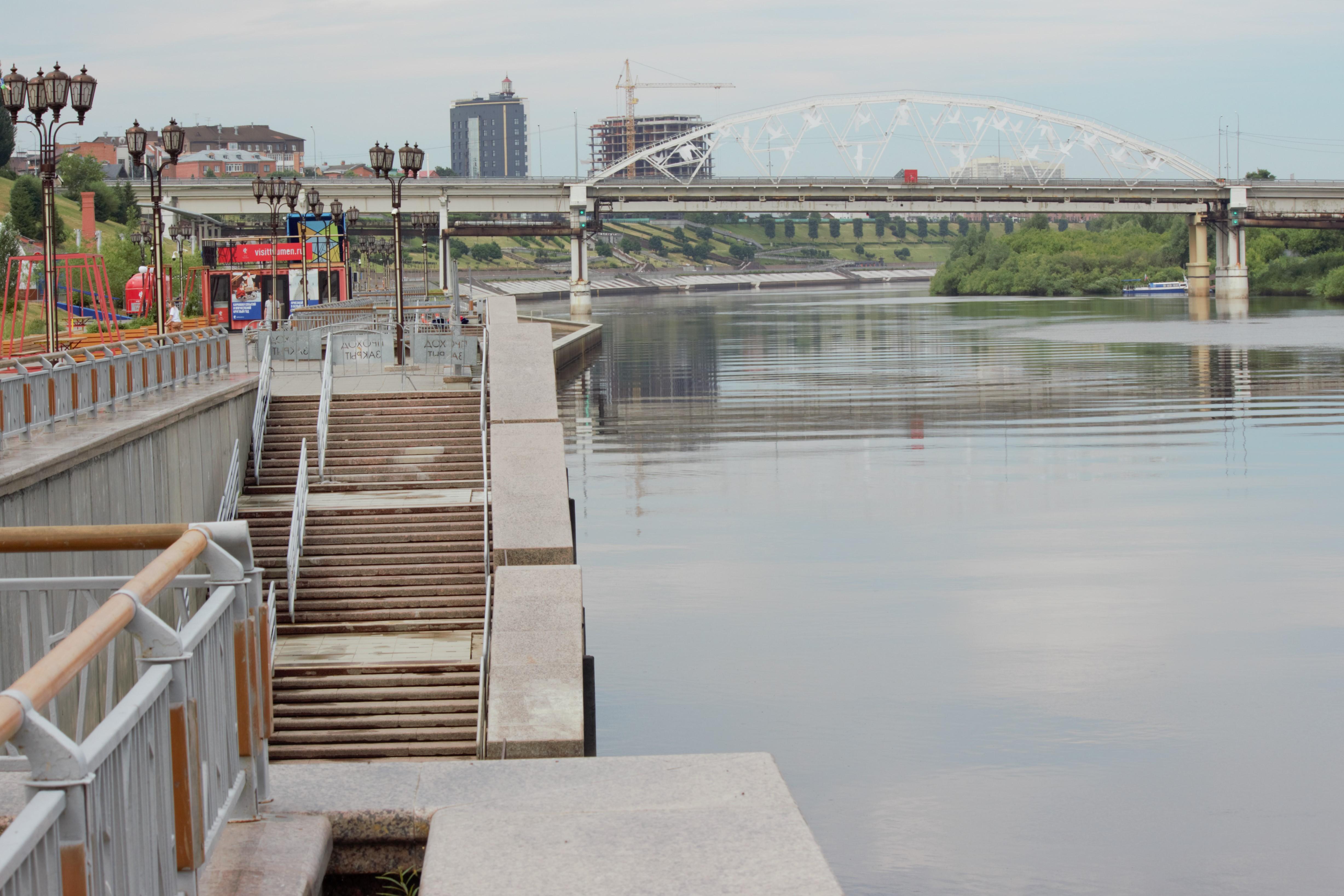 В этом году Тура затопила первый уровень набережной, а после стала отступать. Вот так река выглядела всего неделю назад.