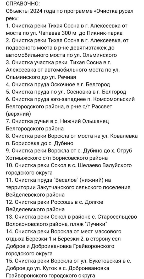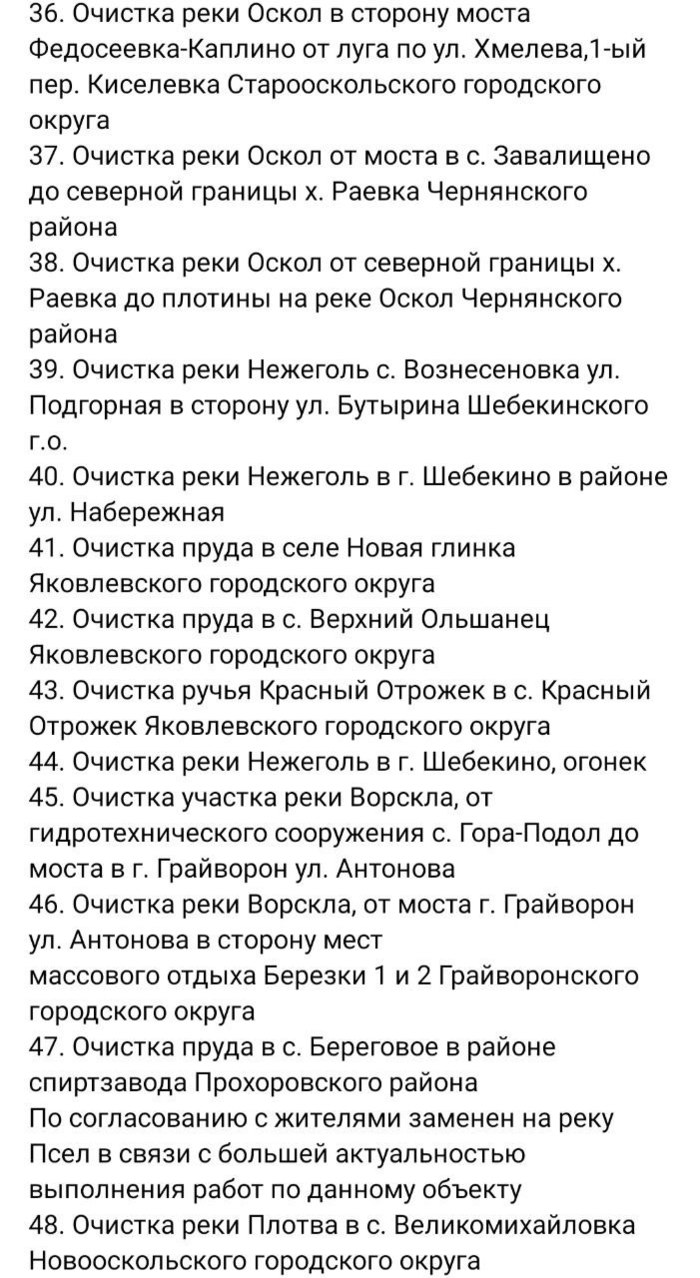 Белгородский губернатор назвал водоемы, которые очистят в 2024 году