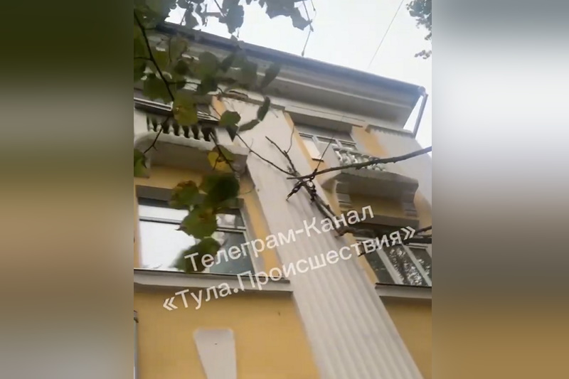 В Туле сегодня утром, 9 октября, из-за сильного ветра дерево упало прямо на многоквартирный жилой дом на проспекте Ленина.