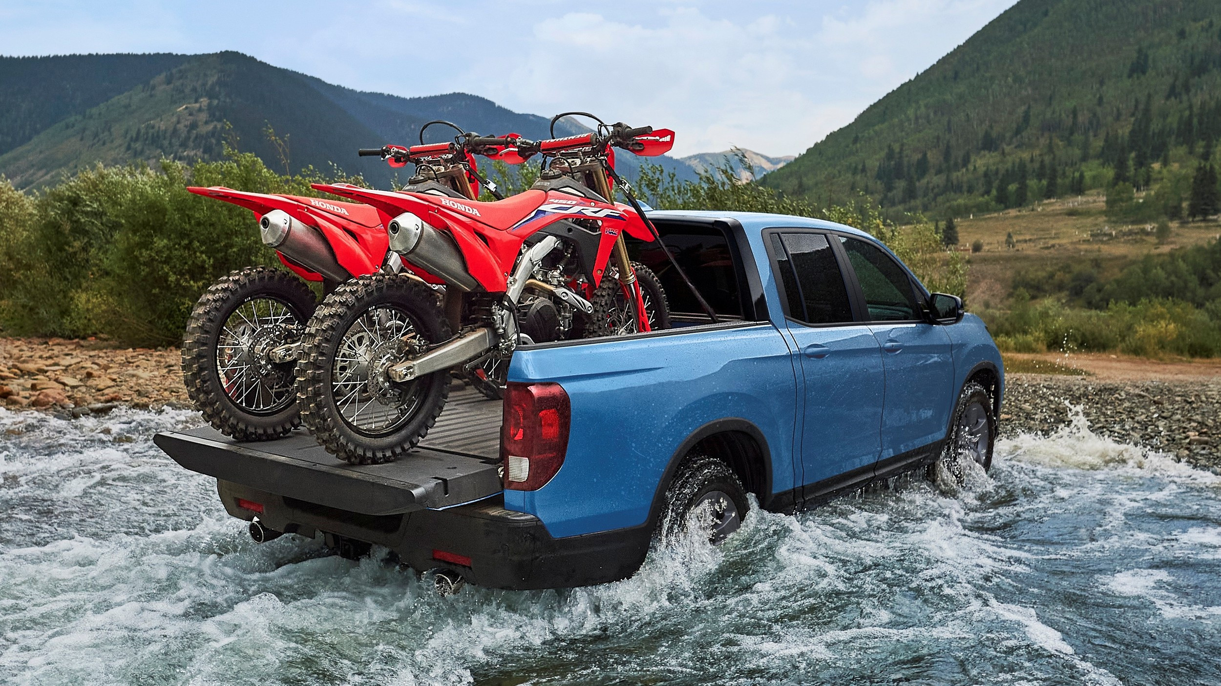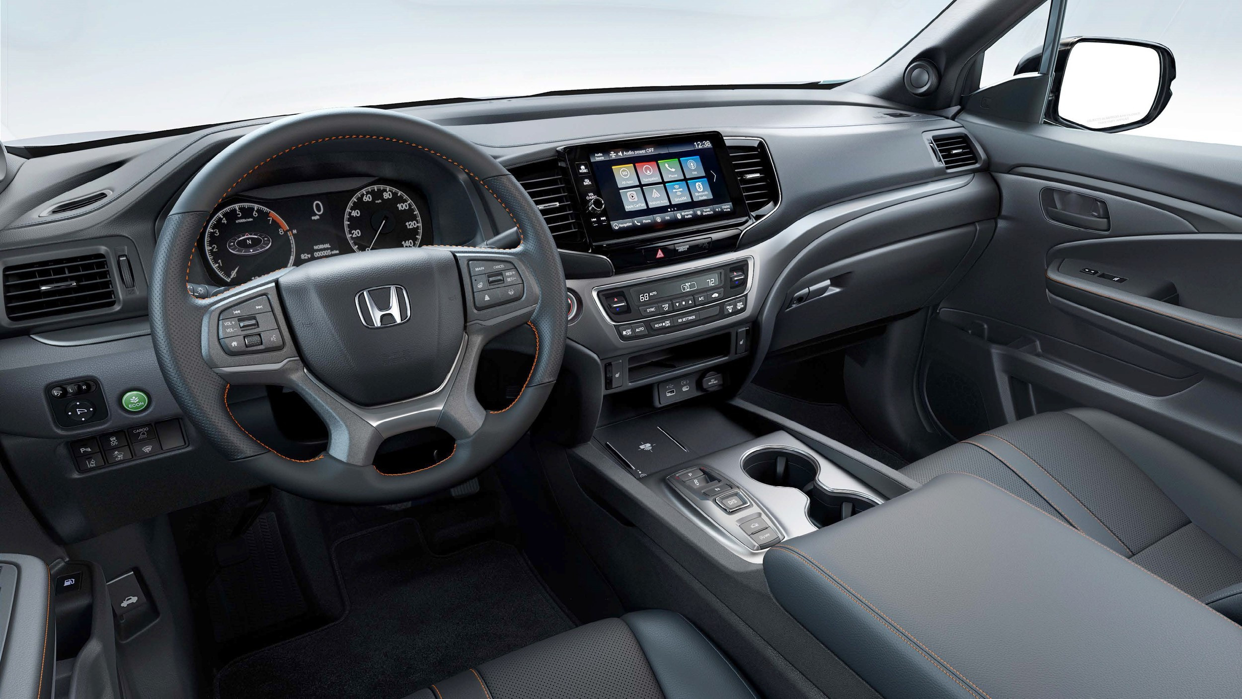 Общие для всех версий Ridgeline обновки — это позаимствованный у кроссовера Pilot нового поколения младший щиток приборов с многофункциональным 7-дюймовым экраном, пристыкованным к аналоговому спидометру, новый 9-дюймовый мультимедийный экран с более производительным процессором и беспроводной поддержкой Apple CarPlay и Android Auto, улучшенное звучание аудиосистемы, новый бокс-подлокотник между передними креслами, расширенный центральный тоннель с беспроводной зарядкой и лотком для двух смартфонов, крупная надпись Ridgeline на откидном борту кузова.