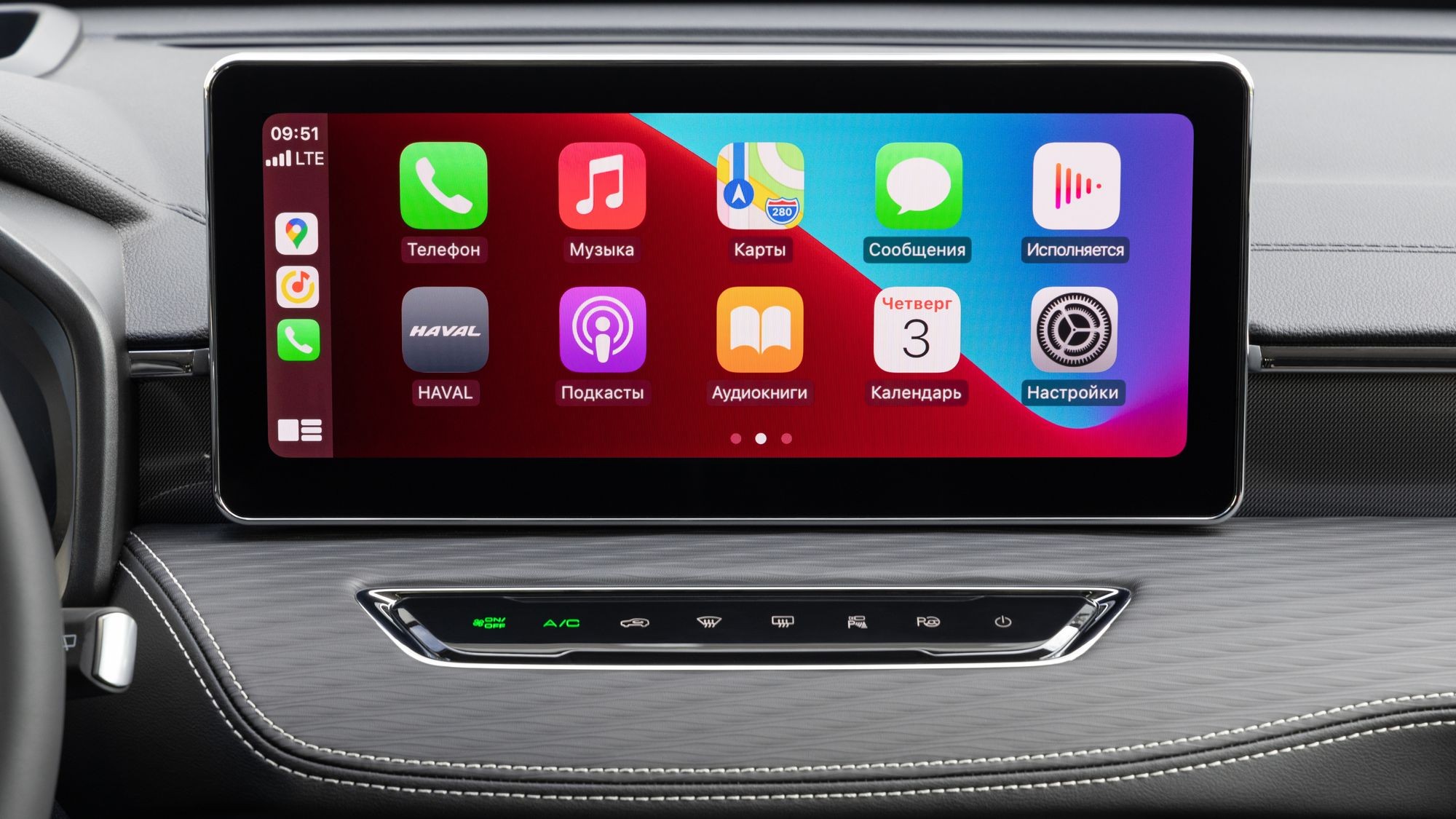 Опционную насыщенность автомобиля можно назвать достаточной, на «богатую» она, конечно, не тянет. Фары – галогеновые (правда, дневные ходовые огни и задние фонари имеют диодные источники), автоматическим электростеклоподъемником оснащена только дверь водителя (остальные – обычные), руль регулируется только по углу наклона колонки. Подогревом оборудованы только сиденья первого ряда, и обивка всех сидений – тканевая, зато есть не кондиционер, а полноценный однозонный климат-контроль. Есть круиз-контроль и головное устройство с 10-дюймовым сенсорным экраном, поддерживающее Android Auto И Apple CarPlay, а также Bluetooth. Есть разъем USB в зеркале для подключения видеорегистратора, а также один USB-вход спереди и 2 разъема для задних пассажиров. Есть бесключевой доступ и датчики дождя и света, но нет обогрева руля, ветрового стекла и форсунок. Естественно, эта комплектация не может похвастаться наличием каких-то электронных помощников водителя, например, ассистентом удержания полосы или контроля слепых зон, зато Jolion – единственный компактный кроссовер ценой до 2 миллионов, адаптированный для буксировки прицепа и оснащенный не только системой стабилизации курсовой устойчивости, но и системой помощи стабилизации движения прицепа (TSA). Ну и раскрученность марки тоже можно засчитать в качестве серьезного плюса.