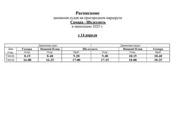 С 14 апреля начинается движение судов по пригородным маршрутам "Самара – Ширяево" и "Самара – Шелехметь".