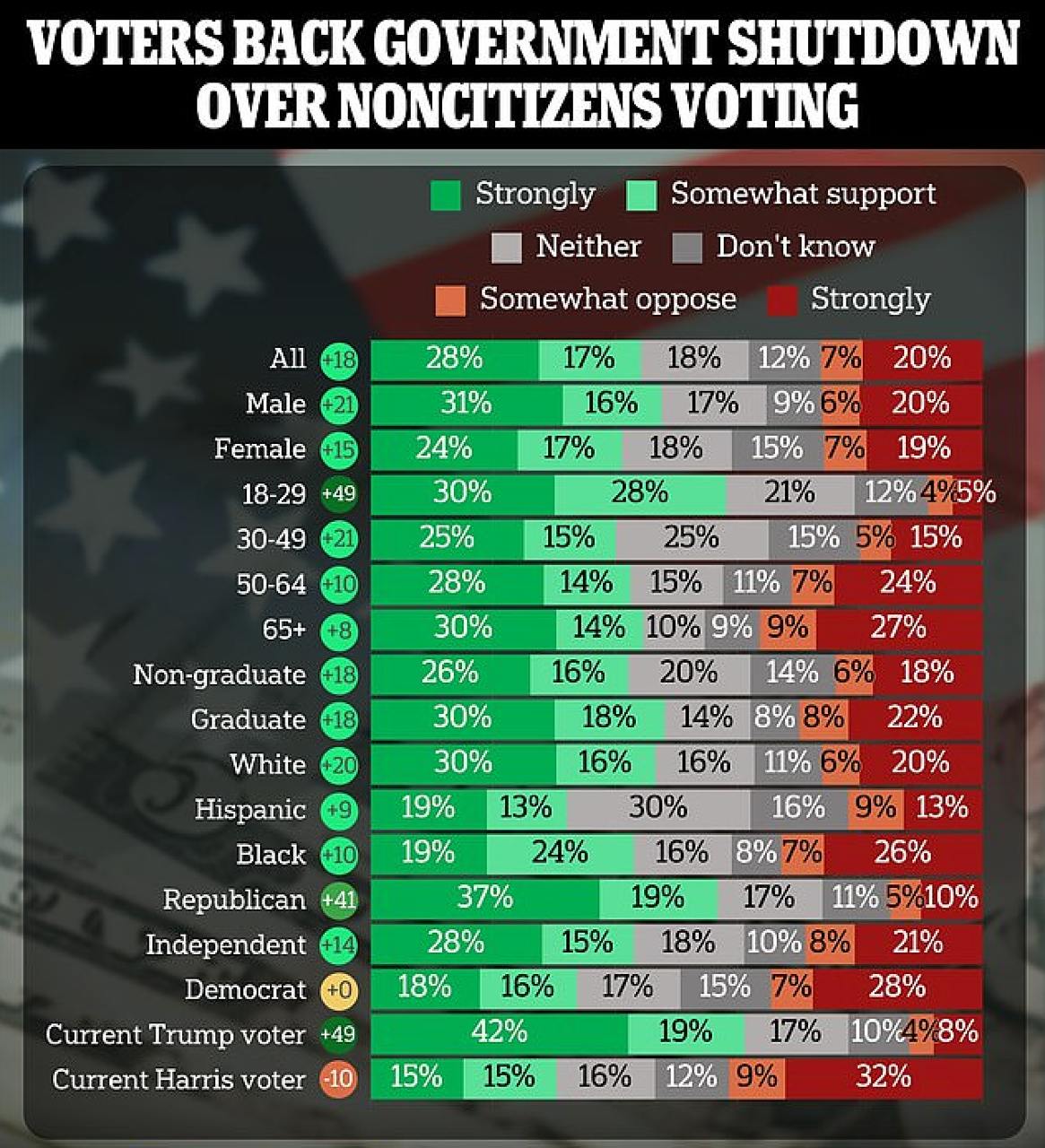 В частности, гарантировать то, чтобы не голосовали нелегалы. Демократы резко против - как им без фальсификаций побеждать? При этом почти половина американцев поддерживает приостановку работы своего правительства, если это позволит провести нормальные выборы.