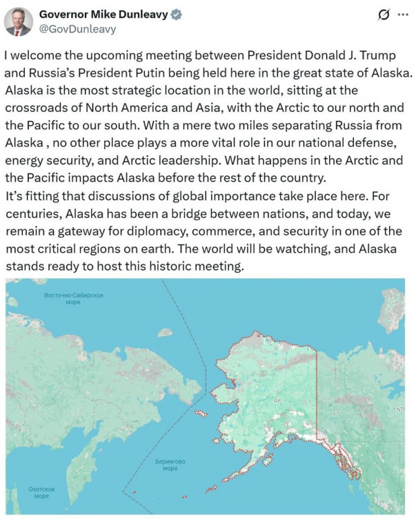 Губернатор Аляски Майк Данливи очень бодро отреагировал на эту новость и в соцсетях назвал штат "самым стратегическим местом в мире", где "Арктика на севере, Тихий океан на юге", и подчеркнул: "Аляска веками служила мостиком между народами и сегодня станет окном для дипломатии, торговли и безопасности". Из интересного. Раньше там были встречи вроде с Китаем в 2021-м, которые быстро скатились в перепалку, так что атмосфера обещает быть горячей. Плюс, США не в ICC, что тоже сыграло роль в выборе места. Предстоящий визит президента России туда станет первым в истории, до этого ни один российский лидер не бывал в этом штате.