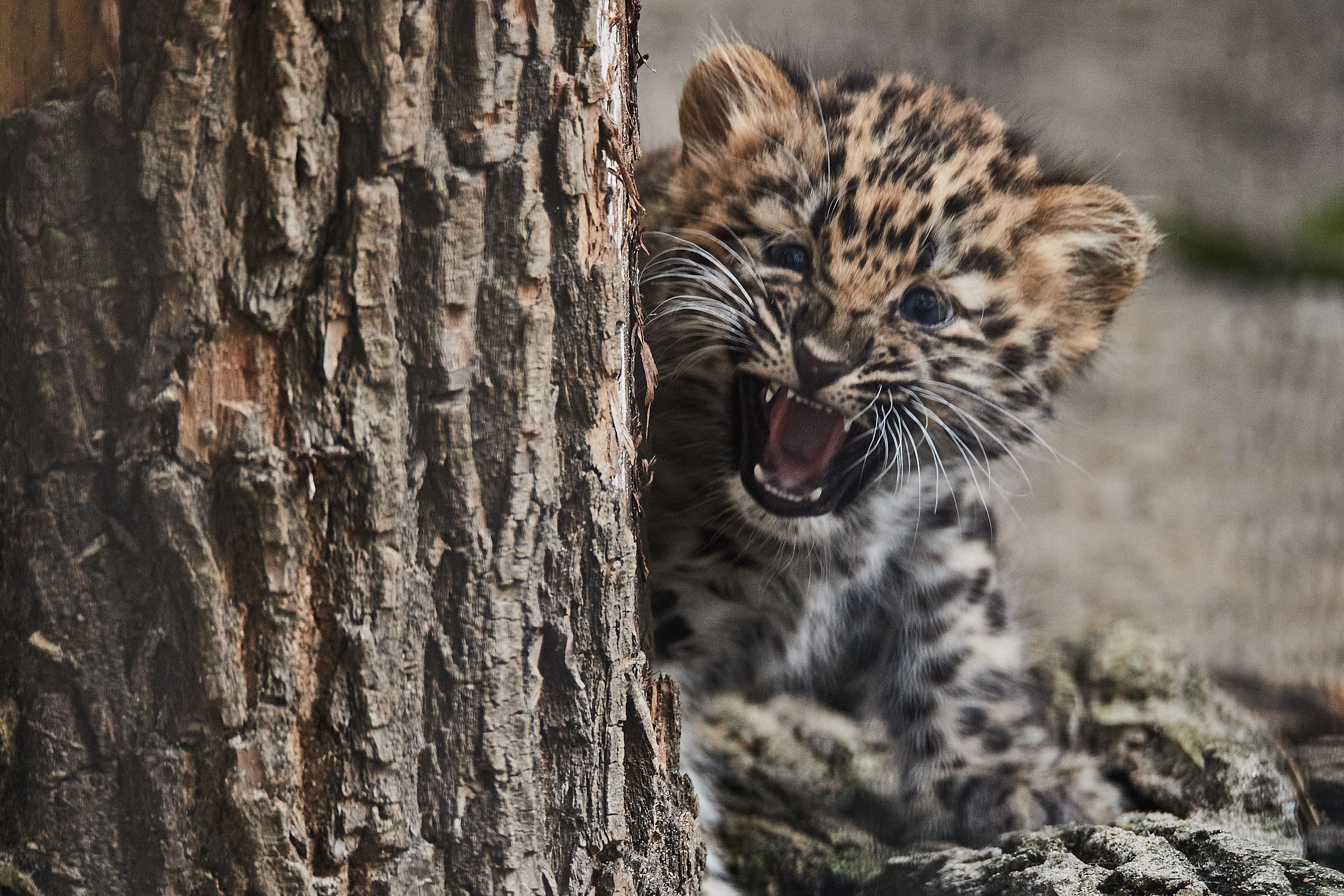 Котенку дальневосточного леопарда почти исполнилось три месяца в Новосибирском зоопарке. Она родилась в конце июля, но выходить к посетителям малышка начала только в сентябре.