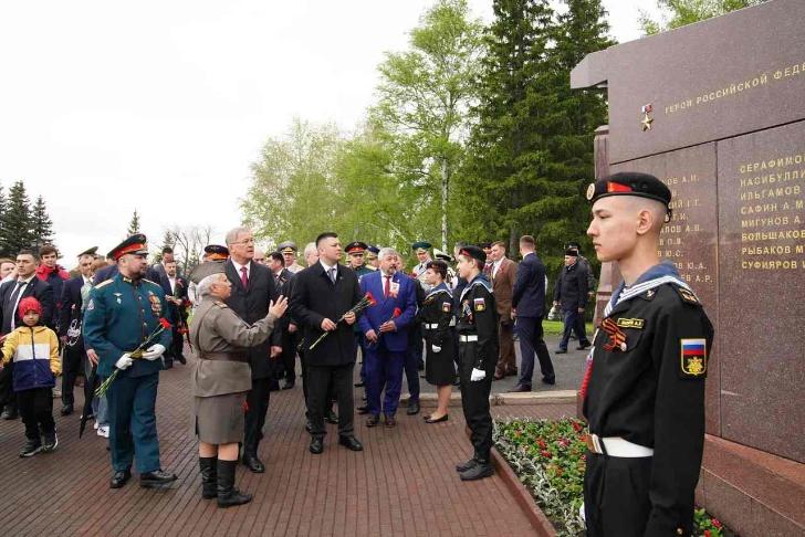 Поучаствовали в акции и первые лица Башкирии — Радий Хабиров шел с портретом своего дедушки Барыя Хабирова. Также с ним прошли супруга Каринэ, Андрей Назаров и Азат Бадранов.