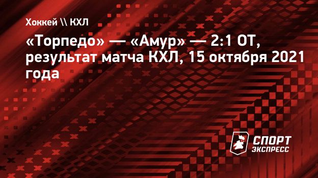 «Торпедо» победило «Амур» (2:1 ОТ) в матче регулярного чемпионата КХЛ.