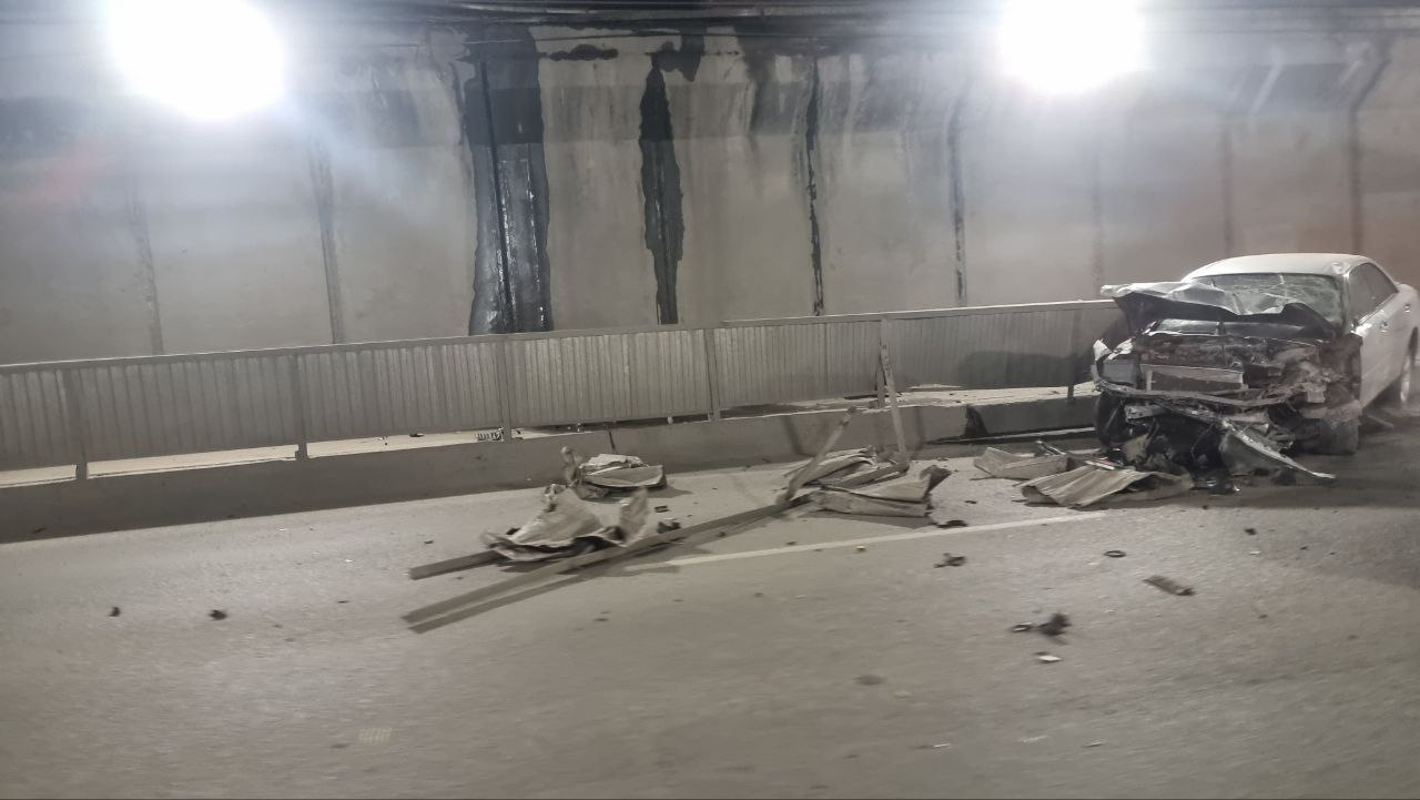 Ночью в Новосибирске автомобиль влетел в ограждение в тоннеле возле Димитровского моста. Фото последствий аварии опубликовали в телеграм-канале «АСТ-54 Black».