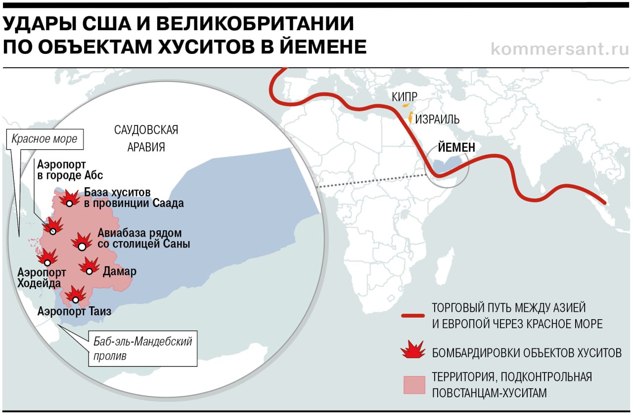 Центральное командование США ранее сообщило о нанесении ударов по 60 целям в 16 локациях Йемена. Хуситы заявили, что по объектам было нанесено 73 удара, в результате которых погибли пять военных.