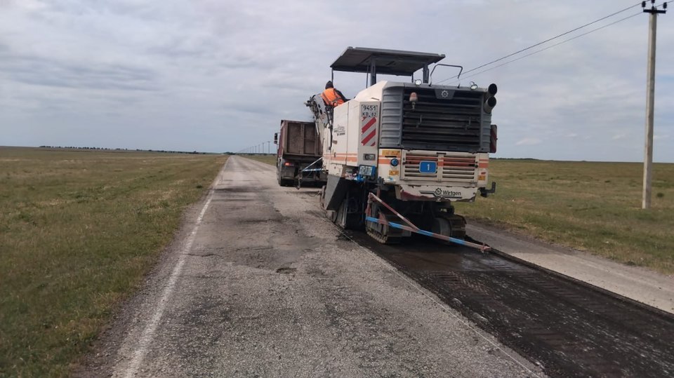 В настоящий момент ведутся работы по фрезерованию асфальтобетонного покрытия, замене щебеночного основания автомобильной дороги, укладке выравнивающего слоя покрытия.