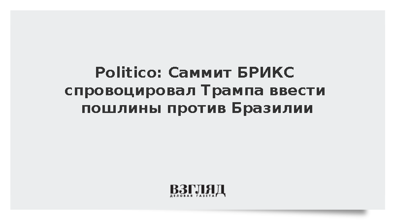 Президент США Дональд Трамп решил ввести 50% импортные пошлины на товары из Бразилии после саммита БРИКС, прошедшего в Рио-де-Жанейро, передает ТАСС со ссылкой на издание Politico. По данным источников издания, этот шаг стал ответом на действия Бразилии и итоги встречи лидеров стран БРИКС, которые были восприняты в Вашингтоне крайне негативно.