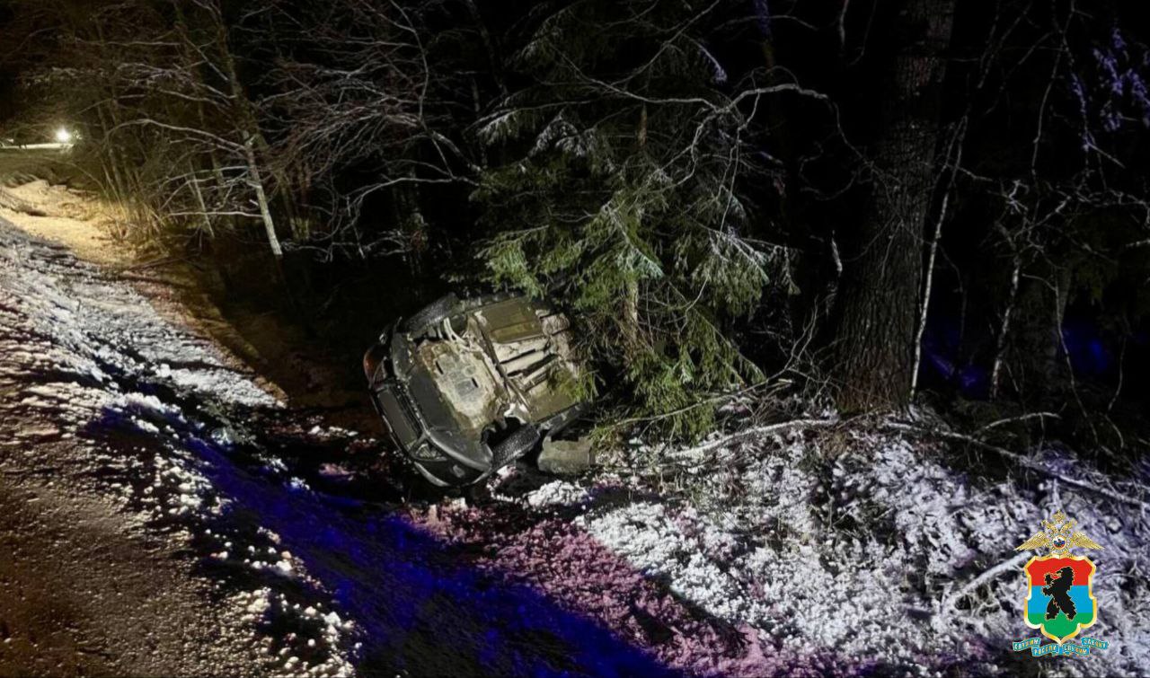 По уточненным данным полиции, за рулем находилась 31-летняя жительница Петрозаводска. Причиной аварии стало упавшее дерево. При объезде дерева женщина допустила съезд с проезжей части дороги в левый по ходу движения кювет с последующим опрокидыванием.