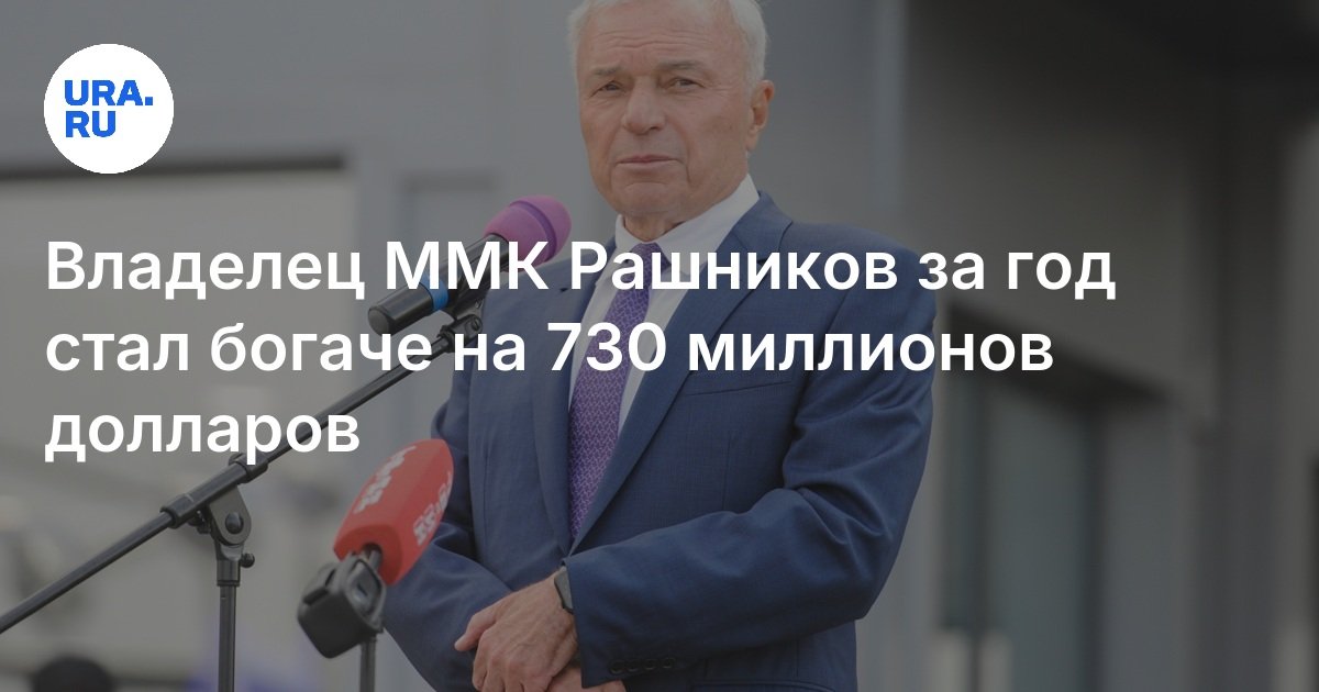 Владелец Магнитогорского меткомбината (ММК, Челябинская область) Виктор Рашников за год разбогател на 730 млн долларов США. Как следует из данных индекса богачей Bloomberg, состояние бизнесмена составило 10,6 млрд долларов.