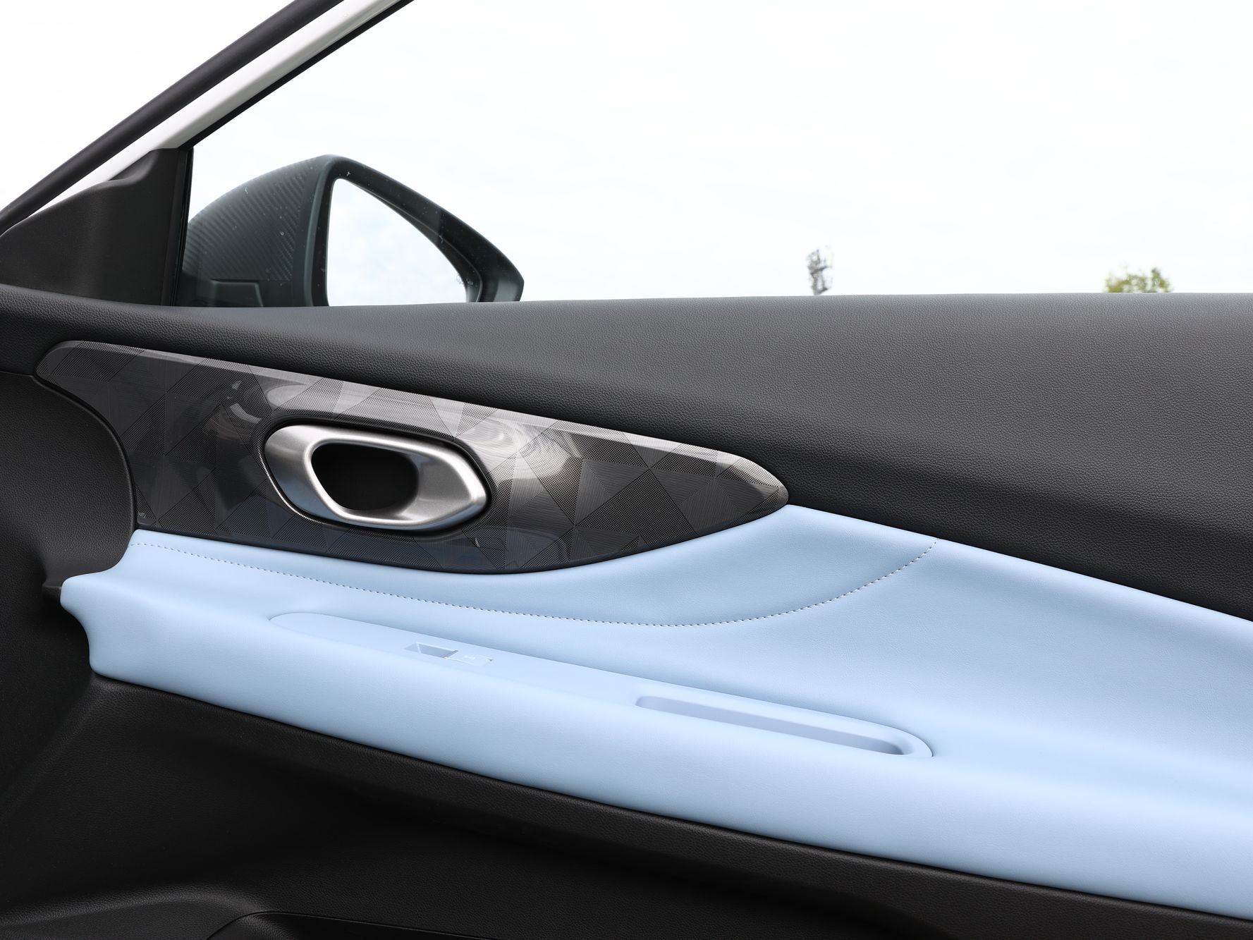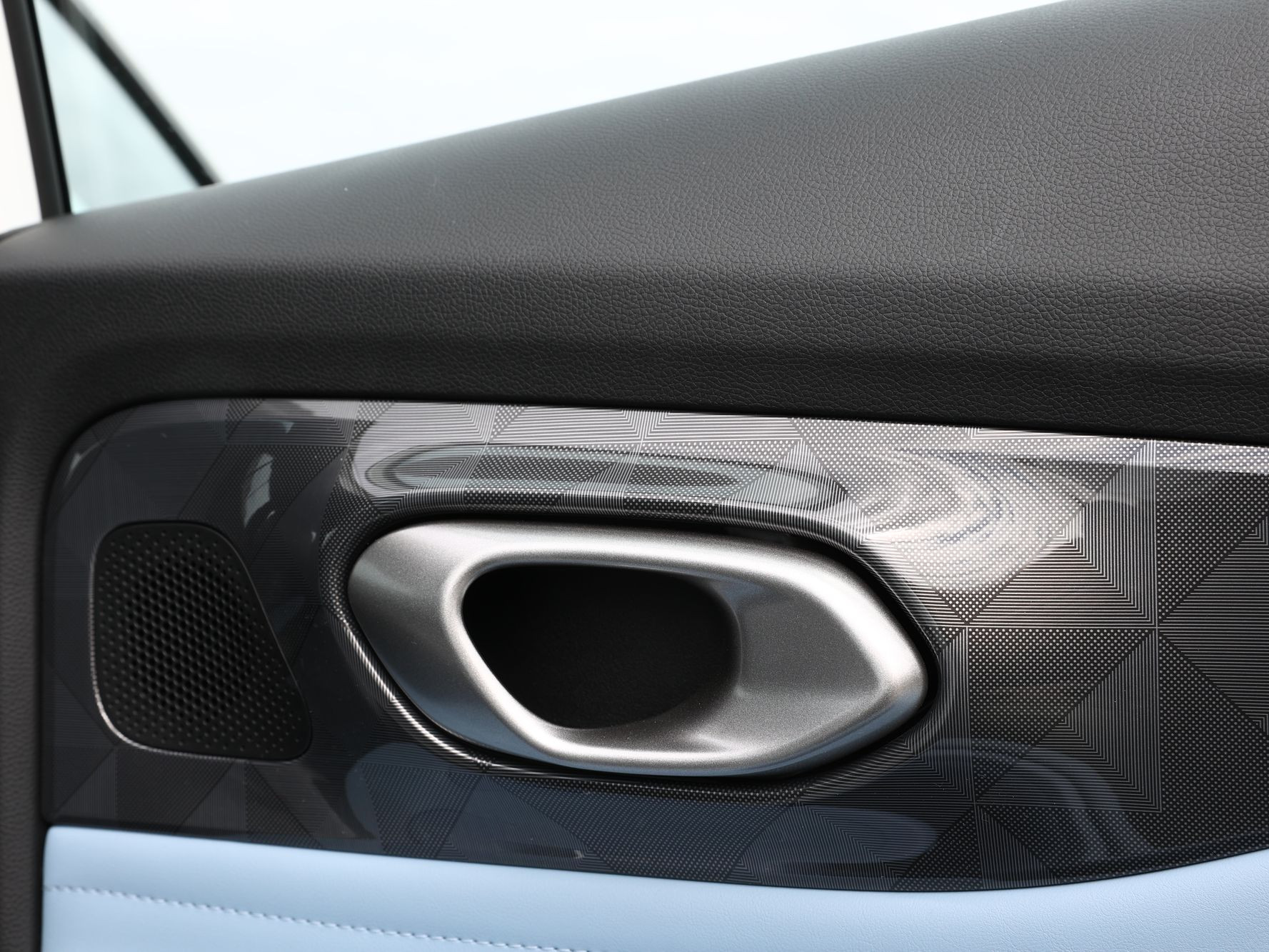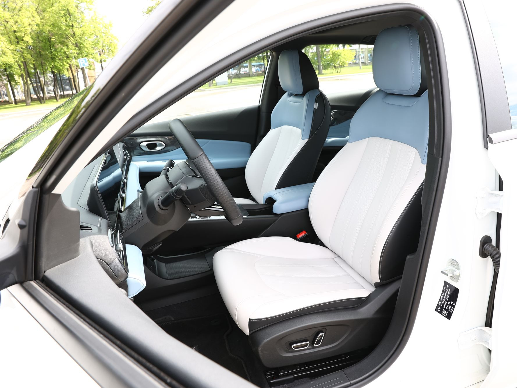 Самое приятное здесь, как ни странно, это сочетание цветов. Белый изумительно гармонично смотрится с нежно-голубой отделкой передней панели, кресел и дверей – так интерьер выглядит очень воздушно. А чёрный цвет нижней части салона добавляет практичности. Правда, я бы заменил голубой на красный, но это уже вкусовщина.