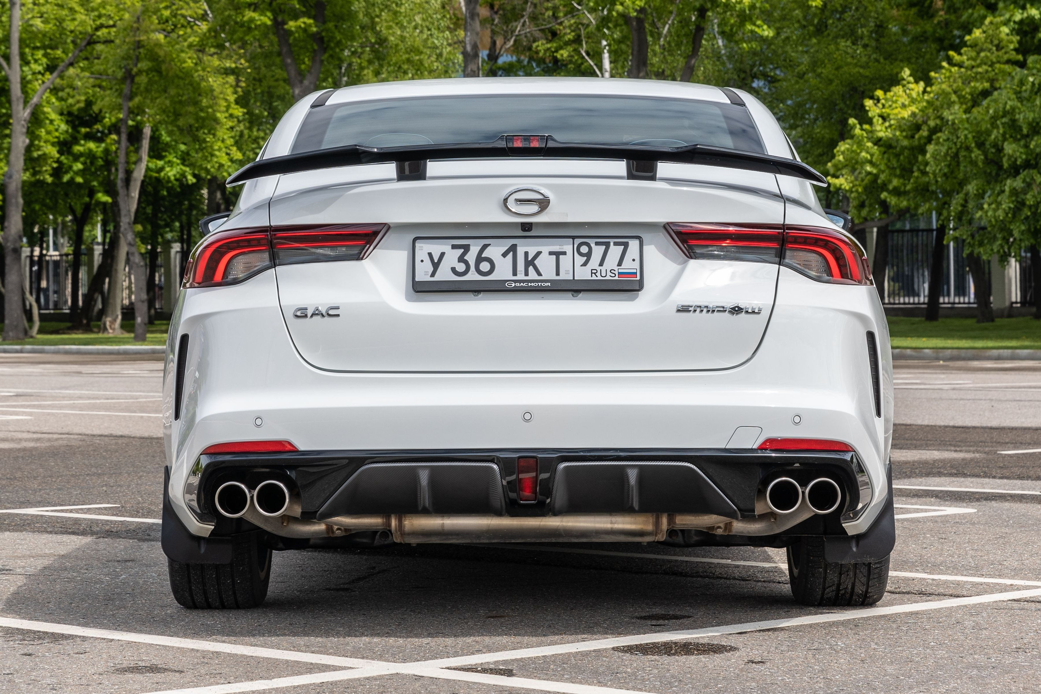 Но в городе GAC ощущается очень динамичным и бодрым – вот что значит правильный антураж! Разгон под наглое рычание выхлопа, безусловно, вызывает куда больше эмоций, нежели ускорение под монотонный вой «турбополторашки» с закрытыми клапанами в выхлопной системе. Есть у седана и набор режимов движения.