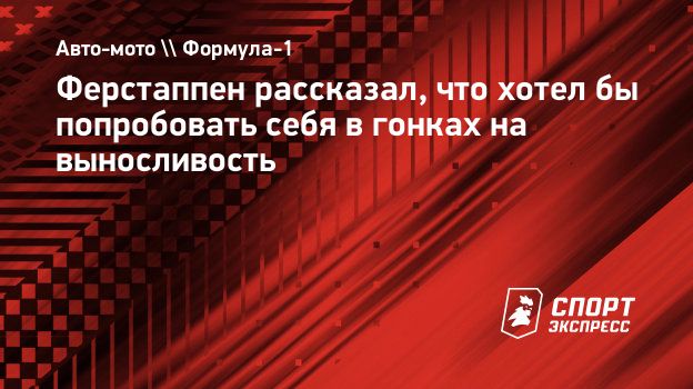 Пилот «Ред Булл» Макс Ферстаппен заявил, что хотел бы попробовать поучаствовать в гонках на выносливость.
