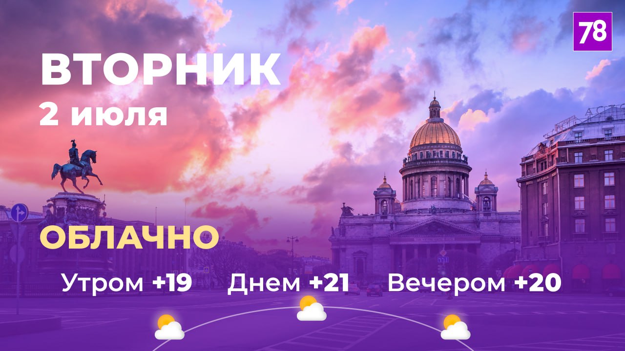 Во вторник в Петербурге пройдут кратковременные дожди, а температура понизится до +22 градусов.