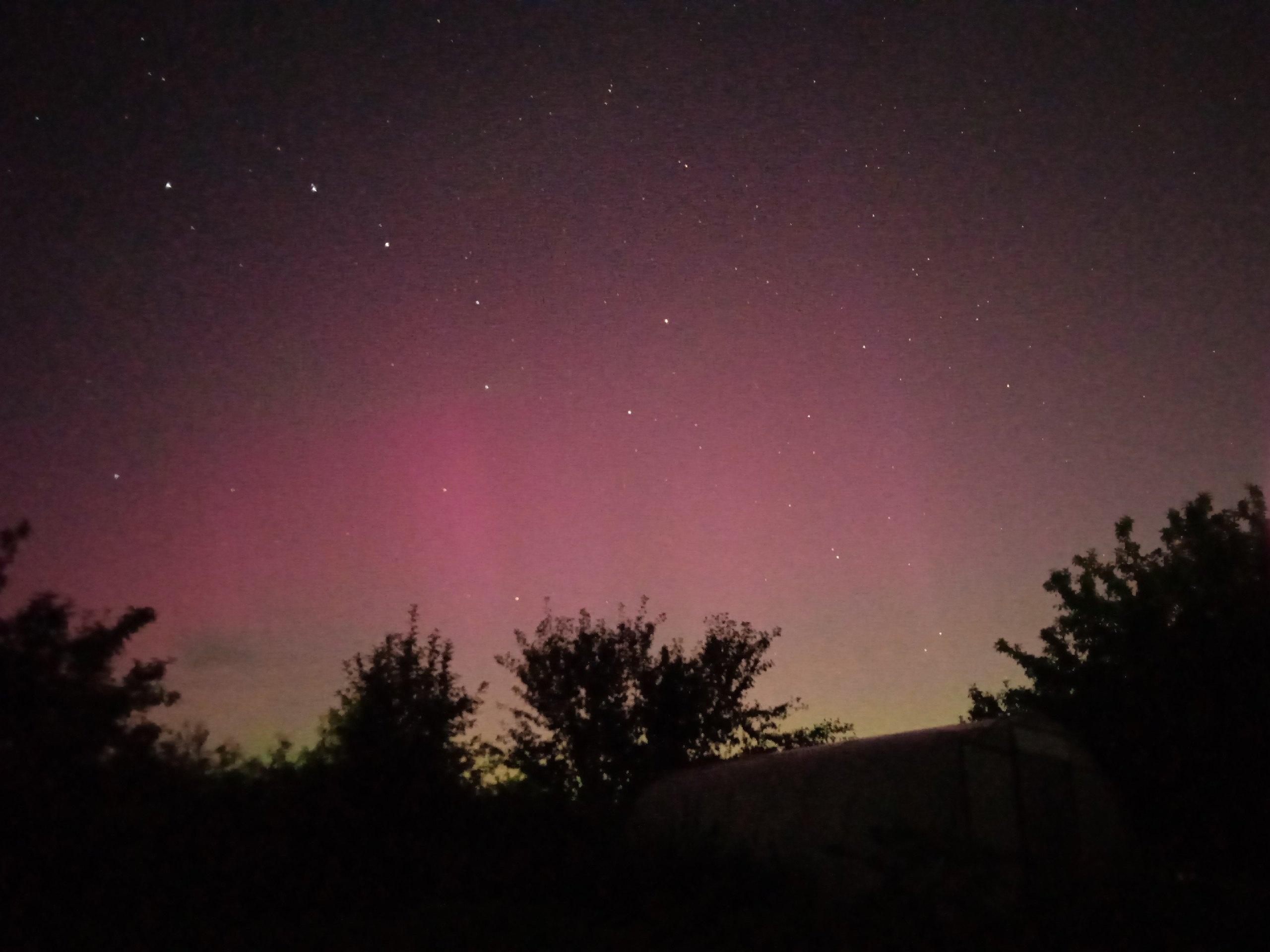 Сергей наблюдал за явлением из Верещагино. Перед ним открылась Большая Медведица в розовом свечении, чуть ниже, на горизонте, небо переливалось зеленым цветом.