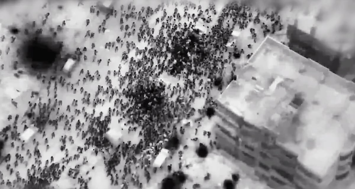 תיעוד אווירי של המבצע להכנסת סיוע הומניטארי לצפון רצועת עזה, המראה כיצד ההמון פלסטיני התנפל על המשאיות וכתוצאה מכך נהרגו עשרות מצפיפות, דוחק ודריסה>> pic.twitter.com/a7DqU9kKFB