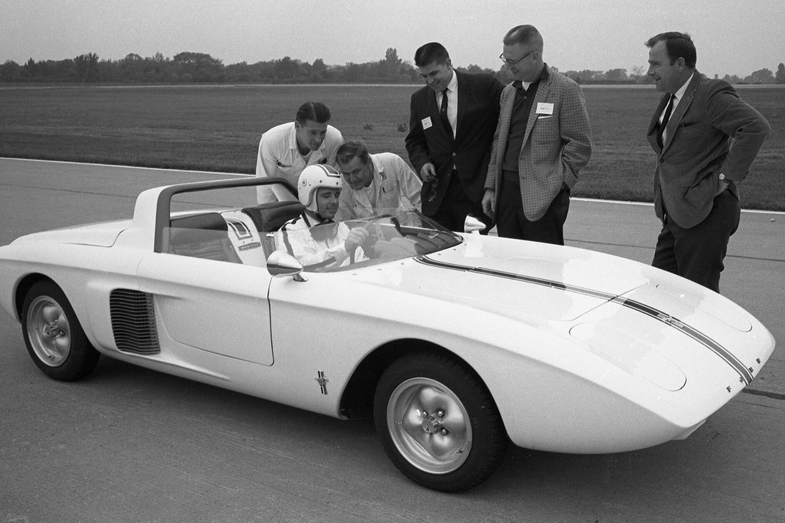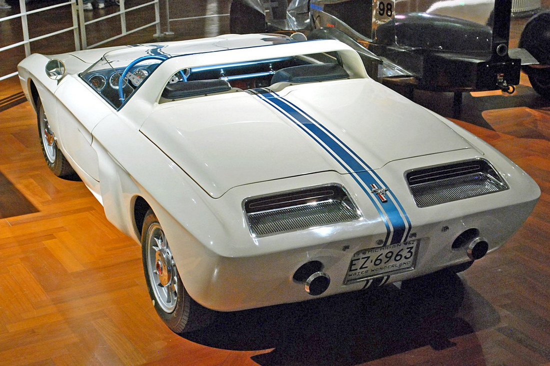 Первый прототип Mustang был показан в 1962 году. Это был экспериментальный родстер, сильно отличавшийся от машины, которая была поставлена на конвейер. К слову, назвали его в честь истребителя P-51 Mustang времен Второй мировой войны. Небольшой двухместный спорткар со среднемоторной компоновкой оснащался 1,5-литровым V4 мощностью 109 л. с. в паре с 4-ступенчатой «механикой».