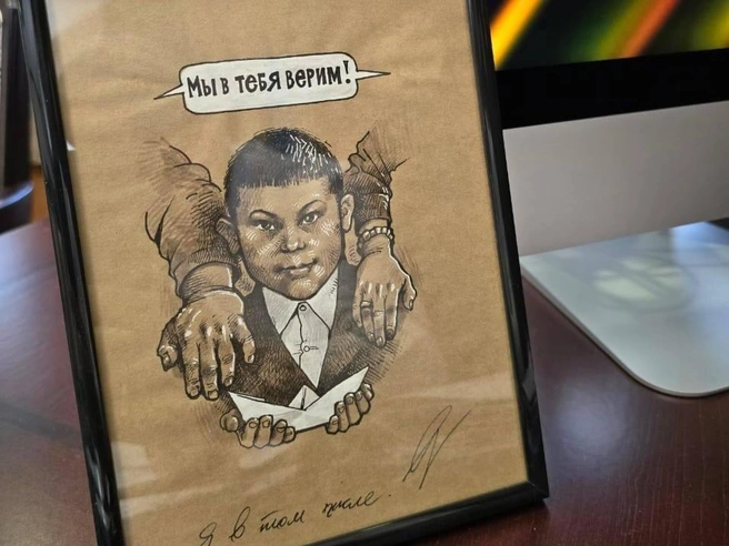 Карикатурист Камиль Бузыкаев подарил Радию Хабирову такой вот рисунок