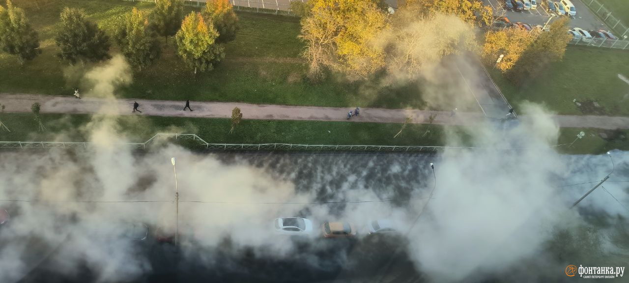 Как рассказали очевидцы, столб дыма стоит на участке между Варшавской улицей и Новоизмайловским проспектом, потоки воды затапливают проезжую часть. На место уже приехали аварийные службы, скорая помощь и спасатели. Сотрудники ГИБДД перекрыли дорогу. Сейчас там собирается пробка. Жителей по громкоговорителю просят удалиться из опасной зоны.