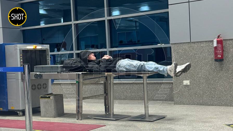 Наиболее предприимчивые россияне, кому неудобно или тесно было спать на креслах, искали себе более комфортные локации для ночлега, например, ленту для досмотра багажа (на фото).