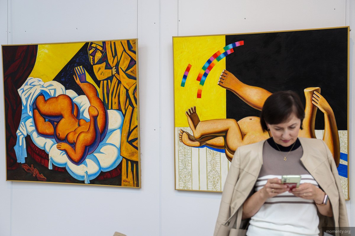 Художник в Международном центре искусств разместил, пожалуй, одну из самых известных своих серий — «Миф о зоне ступеней». Набор произведений демонстрирует, как человеческое тело в момент ходьбы создает ступенчатые формы. Вот уже девять лет они не отпускают творца.