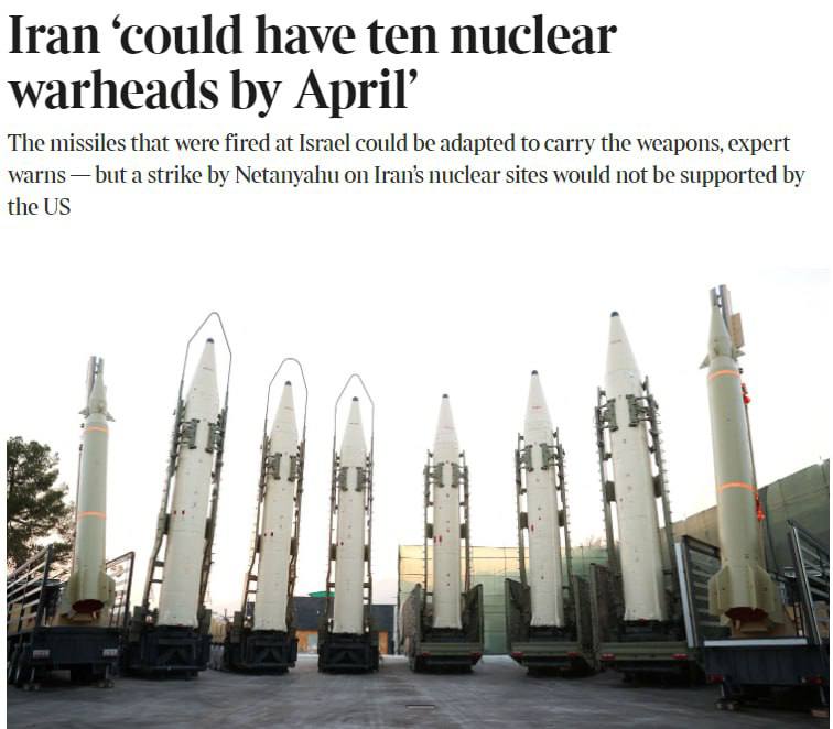 🇮🇷 Бывший заместитель директора МАГАТЭ Олли Хейнонен: «Иран может создать 10 ядерных боеголовок уже к апрелю 2025 года».