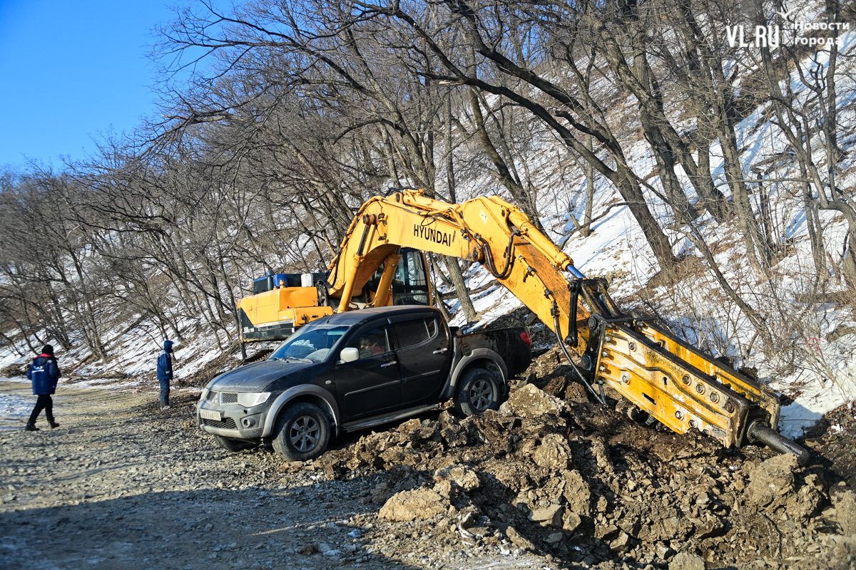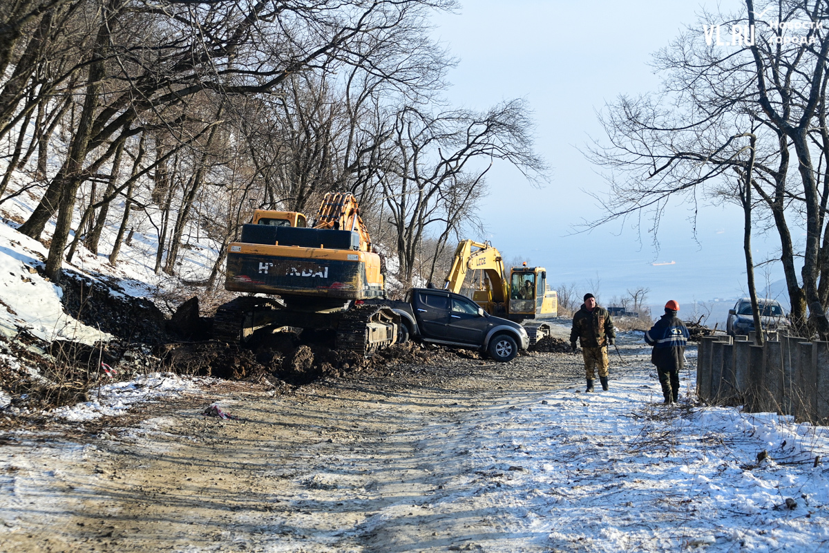 Тяжёлую технику на крепостной дороге под горой Попова во Владивостоке заметили ещё в январе. Несколько экскаваторов и самосвалов разрабатывали грунт и скалу, рядом лежали бетонные лотки, похожие на те, что используют для ливнёвок. В минтрансе Приморского края и в управлении дорог Владивостока сообщили, что не имеют отношения к этим работам.