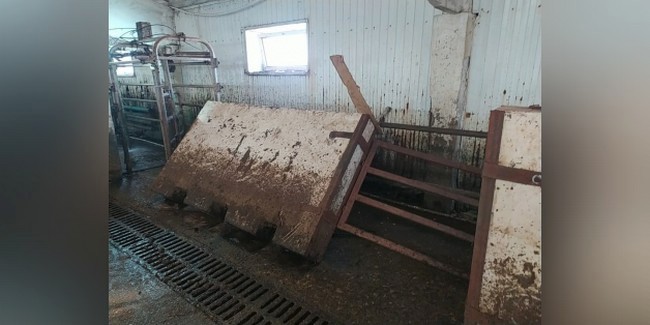 • Во время перегонки в стойло одна из коров задела плиту, которая упала на пострадавшего животновода – придавив к ограждению из металлических перил. В результате сдавливания работник получил тяжёлые травмы, несовместимые с жизнью.
