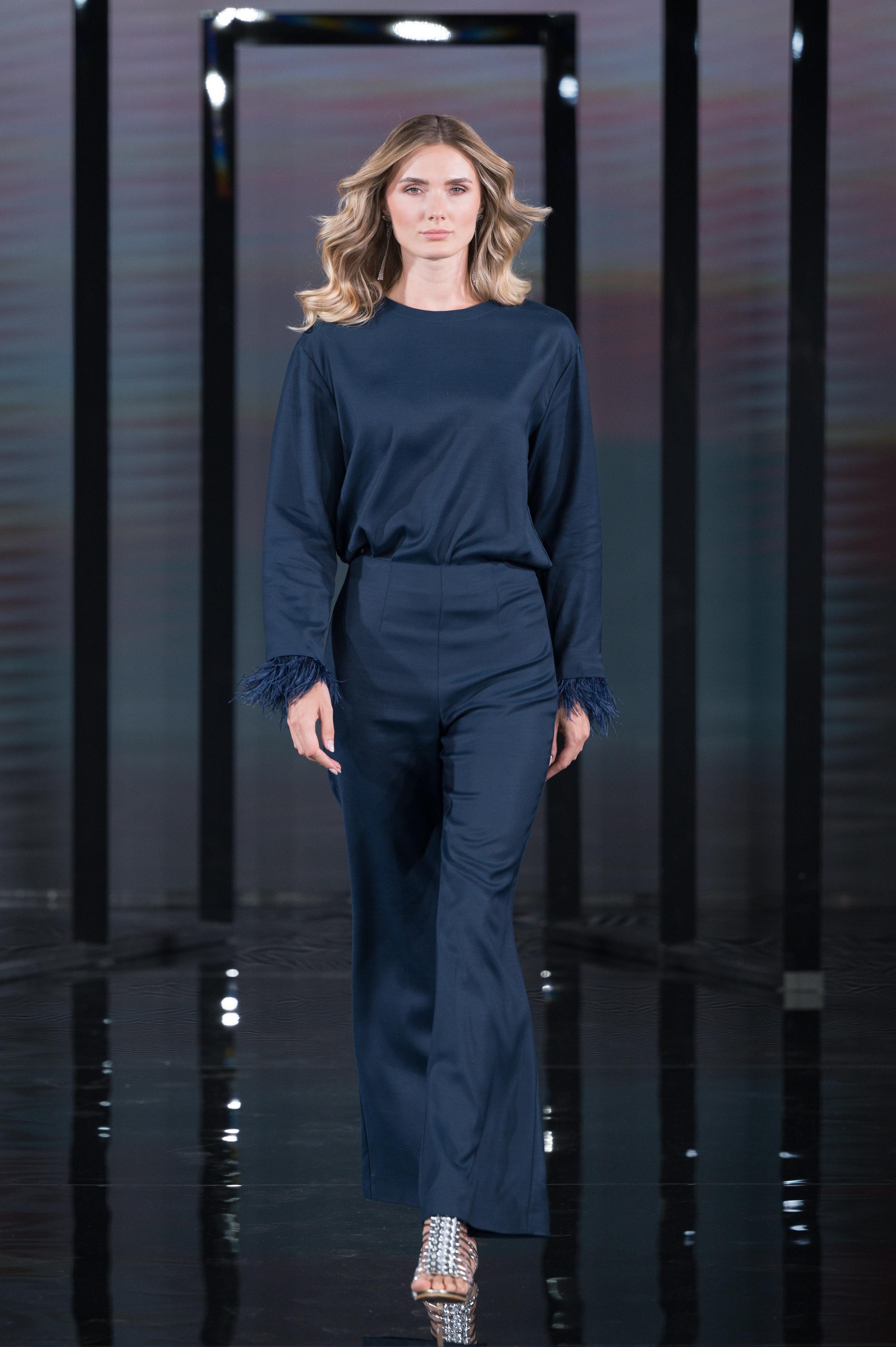 Если ваше жизненное кредо — это «Комфорт превыше всего», то замените дерзкое мини и открытые платья на тандем из блузки с перьями и брюк-клеш. Свободная модель блузы со спущенной линией плеча и съемной бахромой из тонких перьев на манжетах обеспечит вам не только стильный тотал-лук, но и не будет стеснять движения даже во время самых жарких танцев на паркете.