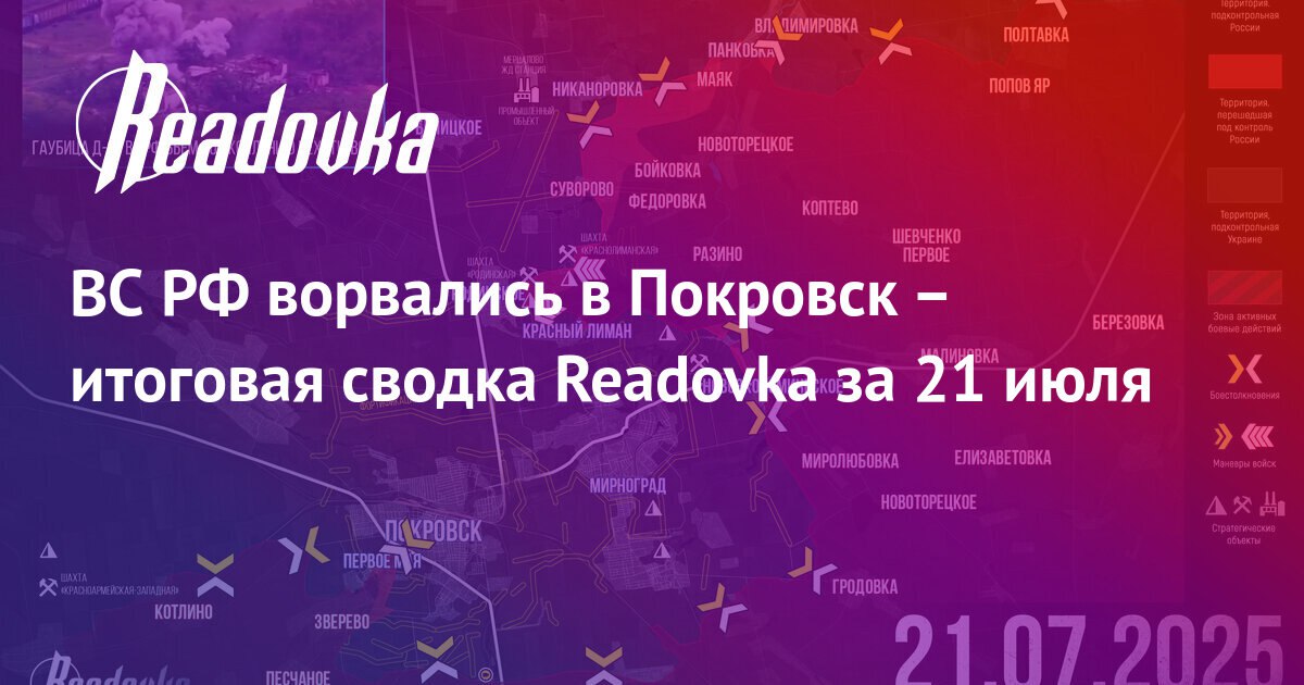 ВС РФ ворвались в Покровск – итоговая сводка Readovka за 21 июля