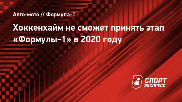 Руководство трассы «Хоккенхаймринг» сообщило, что автодром не сможет принять этап «Формулы-1» в 2020 году. Трасса претендовала на проведение «Гран-при», однако ее руководство не смогло договориться с гоночной серией из-за ограничения по количеству болельщиков.