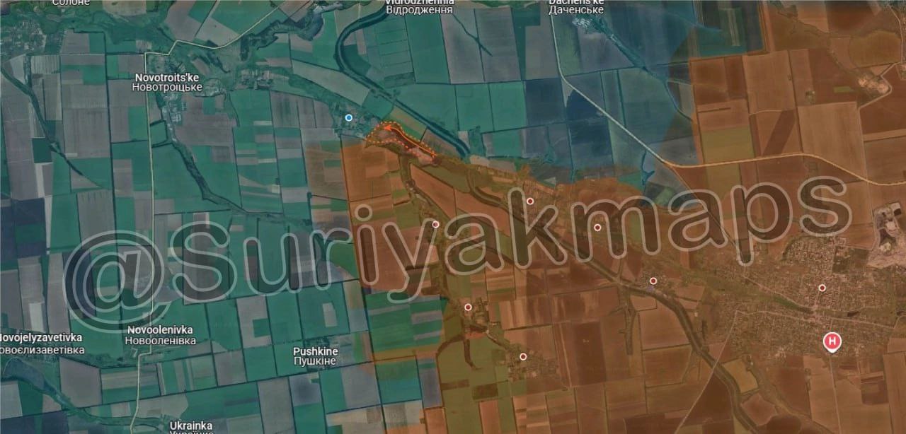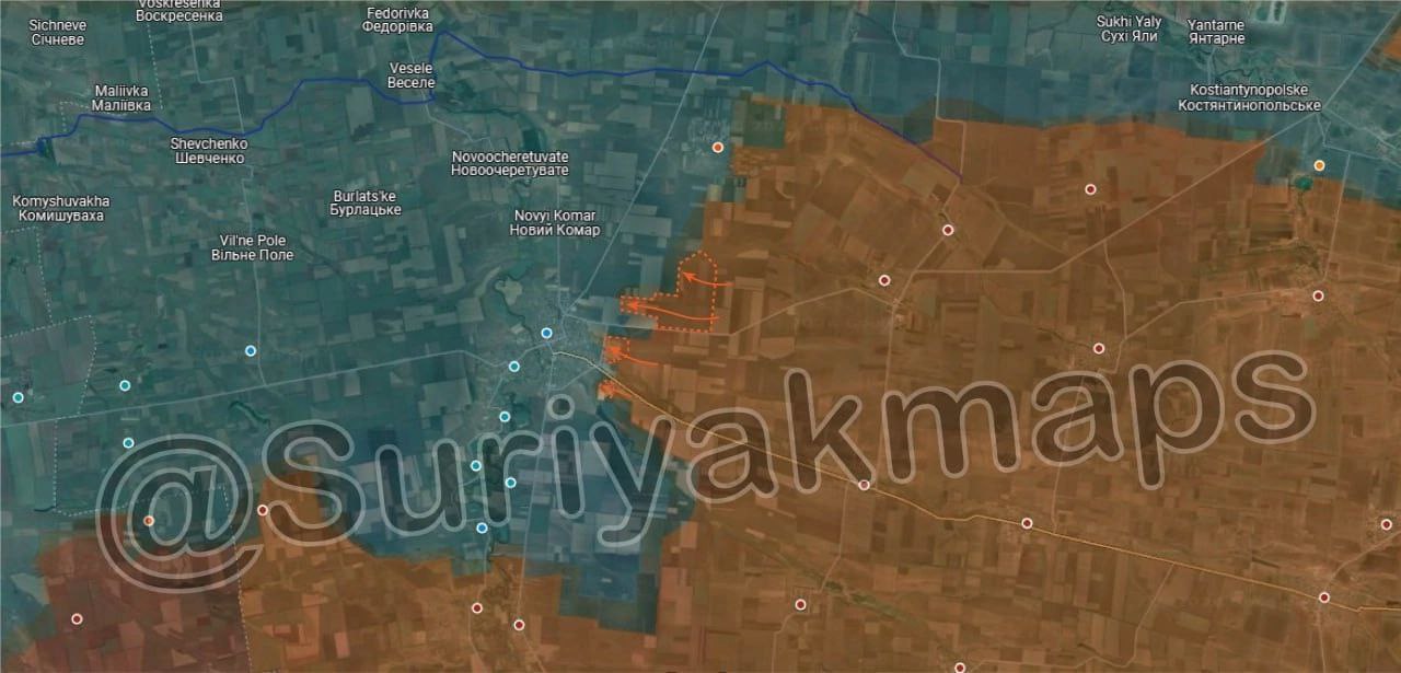 4. Ситуация на Великоновоселовском направлении: Российская армия полностью взяла под контроль восточные склады Великой Новосёлки и заняла новые позиции к востоку от реки Кашлагач. Кроме того, российские войска продвинулись к северу от самого поселка. Сейчас российская армия находится менее чем в 500 метрах от первых домов Великой Новоселки.
