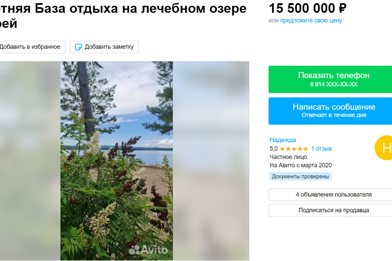 Летнюю базу отдыха на озере Арей в Улётовском районе Забайкальского края выставили на продажу за 15,5 миллиона рублей, сообщается на портале «Авито».
