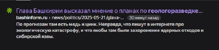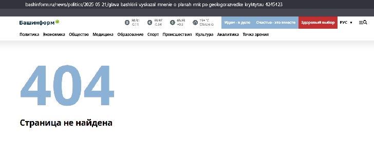 Любопытно, что все государственные СМИ Башкортостана почти сразу после публикации удалили комментарий Радия Хабирова о планах «Русской медной компании» по геологоразведке и возможной добыче меди на хребте Крыктытау. Это произошло всего через несколько минут после выхода материала, хотя сам комментарий был сделан публично на встрече с десятиклассниками в парке «Патриот».