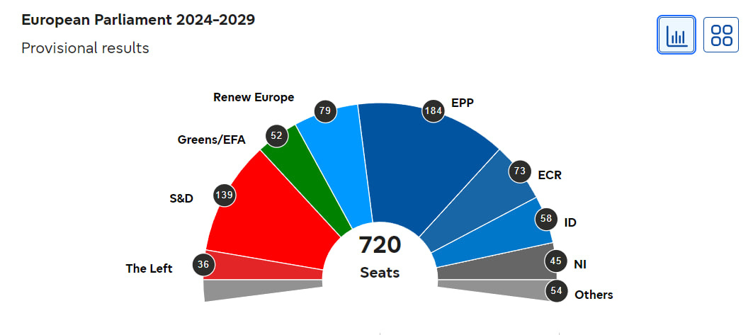 - Зеленые/EFA — Группа зеленых / «Европейский свободный альянс» (52 / 7,22%);