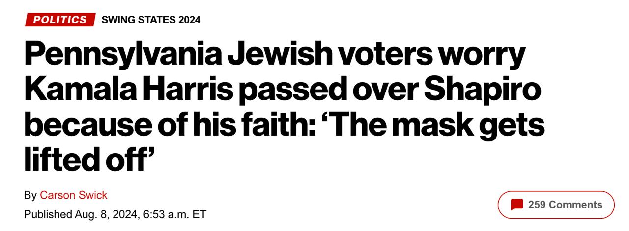 ❗️ В связи с этим многие избиратели-евреи обеспокоены выдвижением Тима Уолца.