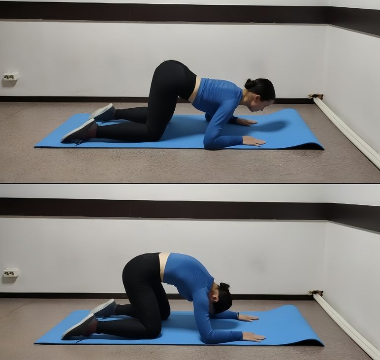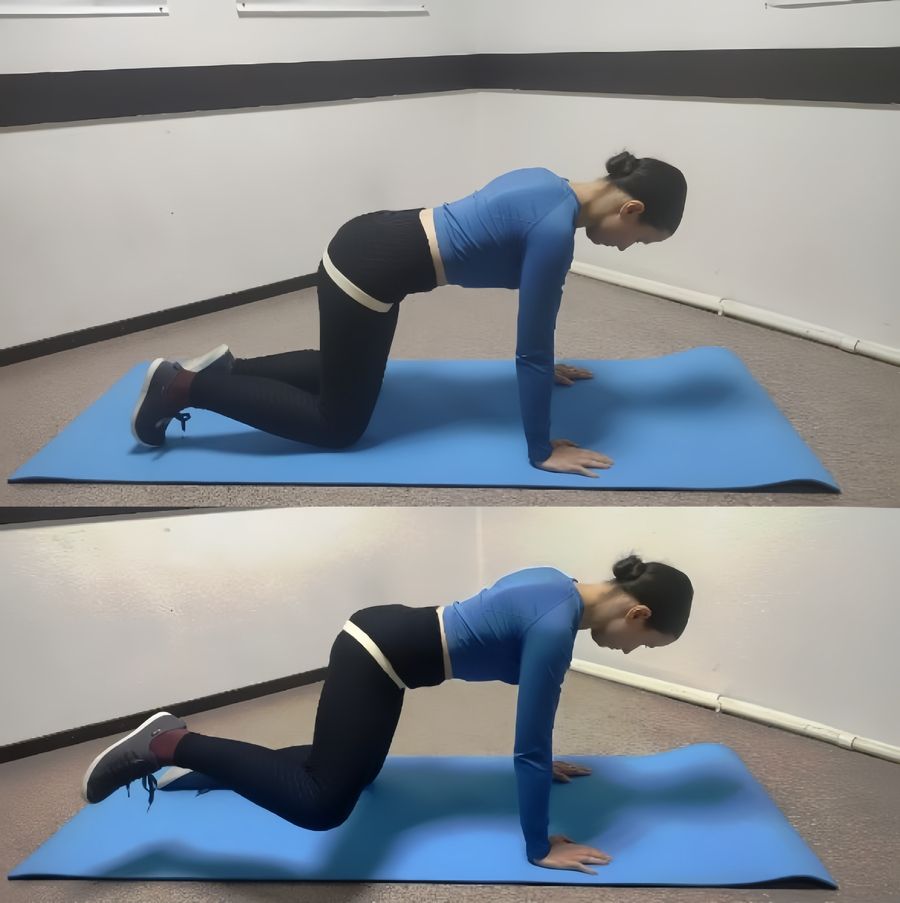 - Встаньте на четвереньки, распределите вес на четыре опоры: колени и локти/предплечья. При этом локти находятся под плечами, а колени под тазом.